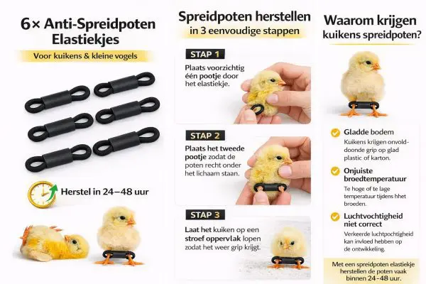 Anti-spreidpoten elastiekjes voor kuikens (6 stuks)