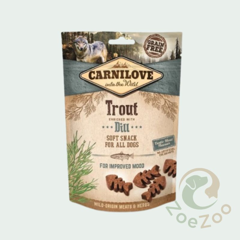 Het is een smakelijke, halfnatte traktatie waar je hond gek op zal zijn. Deze variant, met forel en dille, is een goede ondersteuning voor een goede stemming. Te gebruiken als tussendoortje of tijdens het trainen, gemakkelijk doormidden te breken.