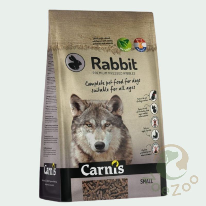 Carnis konijn is een tarweglutenvrije receptuur. Konijn wordt als enige dierlijke eiwitbron gebruikt waardoor deze brok uiterst geschikt is voor honden met voedselallergieën (m.u.v. honden met een konijnallergie). Konijn wordt relatief weinig gebruikt in diervoeding waardoor de kans op een allergie kleiner is. Deze brok is ook goed inzetbaar bij honden met huid- en vacht problemen of spijsverteringsproblemen. De toevoeging van zalmolie ondersteund een gezonde huid en vacht.