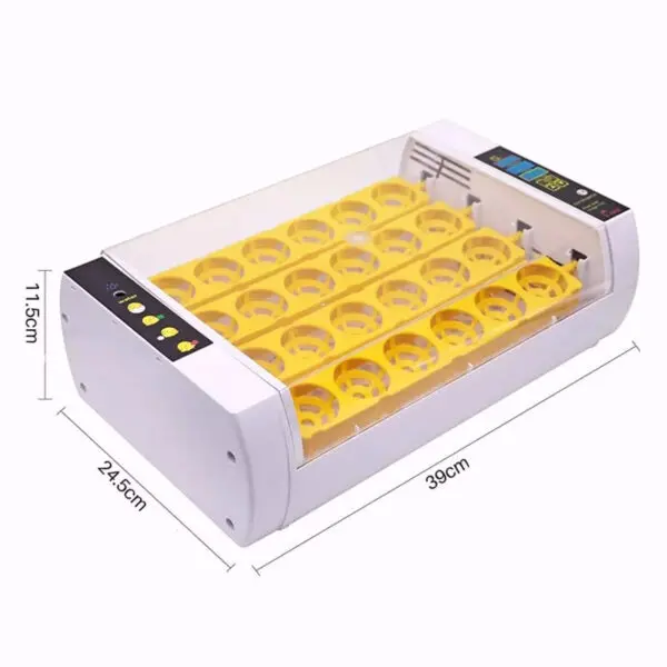 Deze automatische broedmachine is zeer makkelijk in gebruik. De machine heeft een duidelijke bediening en automatisch keersysteem. De eieren worden automatisch omgedraaid om het gelijkmatig te kunnen verwarmen. Deze broedmachine is met een ingebouwde hygrometer en schouwlamp. Het interne ventilatiesysteem zorgt ervoor dat de eieren voldoende lucht hebben om te ademen. Dit een ideale broedmachine voor de beginnende maar ook voor de professionele broeder.