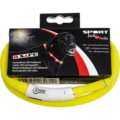 De Jack and Vanilla Sport Led Halsband is ideaal voor iedereen die een zichtbare hondenhalsband zoekt voor gebruik in de avond of bij weinig licht. Het biedt niet alleen veiligheid en zichtbaarheid voor uw hond, maar voegt ook een stijlvol element toe aan uw wandelingen.