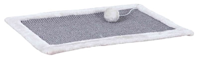 Trixie Krabmat Sisaltapijt/ Pluche Grijs/ Lichtgrijs 55X35 cm 2st is een krabmat die hangend of op de grond kan neerleggen voor de kat. De zijkanten en bovenkant van de krabmat zijn gemaakt van sisal waar de kat lekker zijn nagels in kan leggen. Het middenstuk van de mat is gemaakt van pluche (polyester) daar kan de kat lekker aan krabben voor speelplezier.