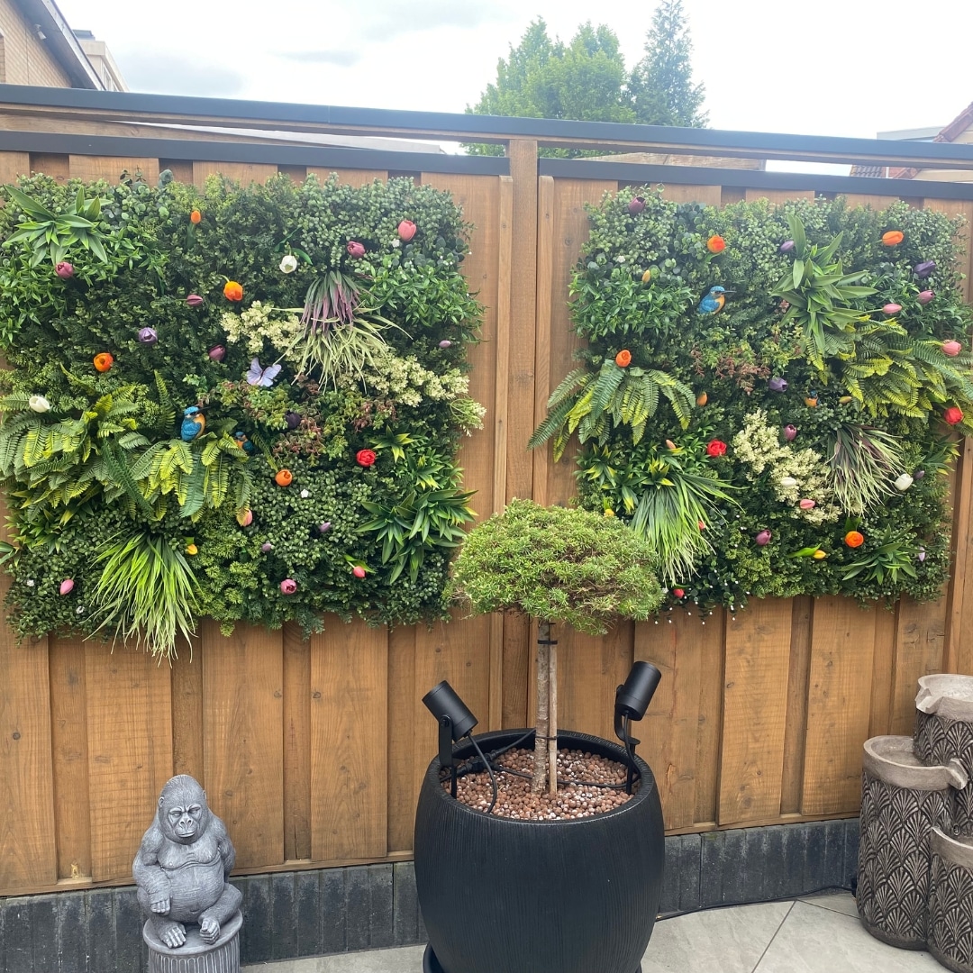 Creëer een natuurlijke en gevarieerde omgeving met de Kunsthaag Mirre serie. Deze serie bestaat uit drie varianten – Mirre A, B en C – die verschillende plantensoorten, waaronder varen en mos, combineren voor een levendige uitstraling. Door deze varianten te combineren, kunt u een extra gevarieerde en natuurlijke ambiance creëren, zonder dat u zich zorgen hoeft te maken over onderhoud.