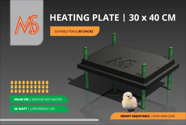 Deze MS warmteplaat wordt geleverd met 5 drinkcups en een 1kg voersilo.
