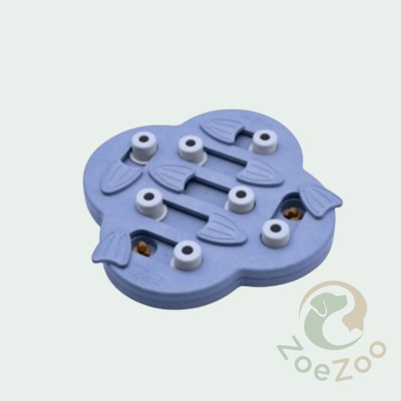 Plezier begint met de Dog Hide N ‘Slide. Leuk voor alle honden, ongeacht leeftijd, grootte of ras, de Hide N ‘Slide entertaint. Plaats de snacks in de compartimenten en schuif de afdekplaatjes eroverheen. Plaats het spel op de vloer en moedig de hond aan om de snacks vrij te spelen.