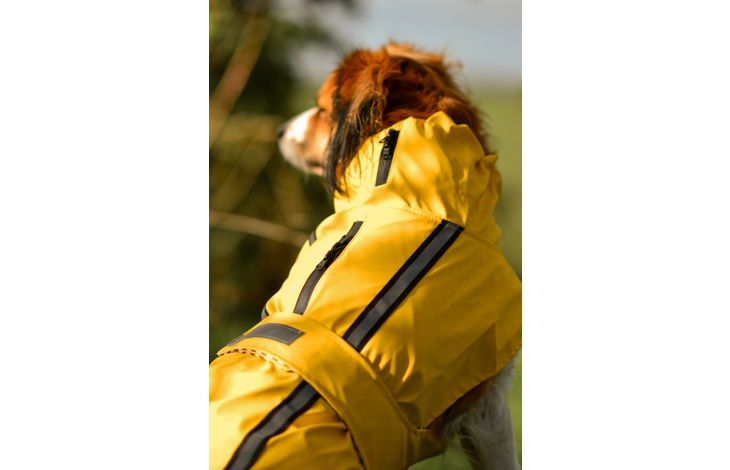 Bescherm je viervoeter tegen regen en modder met de Ciro Gele regenjas. Waterdicht, wasbaar en met reflecterende stroken voor extra veiligheid. Met opstaande kraag en aanpasbare openingen voor leiband en harnas. Comfortabel en verstelbaar voor een perfecte pasvorm.