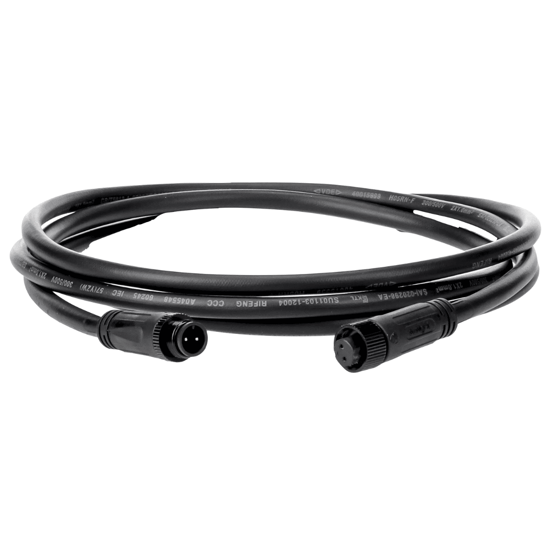 Betrouwbare stroomvoorziening: De kabel is twee-aderig met een aderdikte van >1,0 mm, UV-bestendig en volledig waterdicht (IP68). Door het gebruik van hoogwaardige connectoren is de overbrengingsweerstand minimaal, zelfs bij langere trajecten of meerdere koppelingen. Dit voorkomt ongewenst knipperen van armaturen.