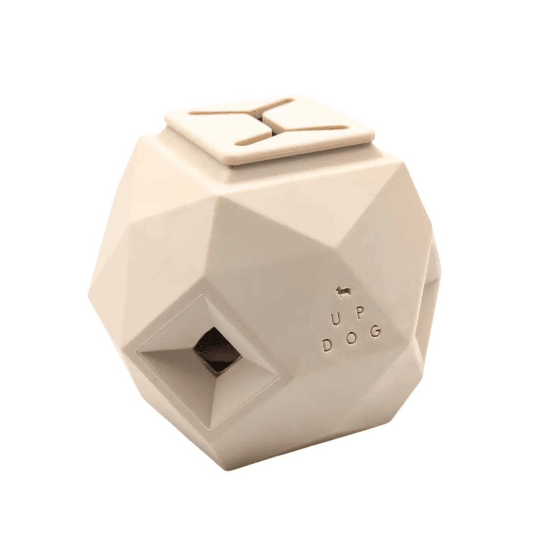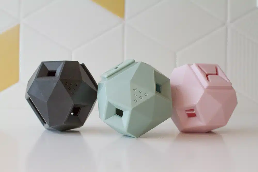 Een verrijkend hondenspeeltje met een minimalistisch en modern ontwerp. Doe er snoepjes of brokjes in en laat je hond The Odin gooien en rollen om de snoepjes eruit te halen. Bevestig twee of meer The Odin speeltjes aan elkaar om het speeltje interactief te houden en de manier waarop je hond met het speeltje omgaat te veranderen.