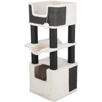 Deze toren heeft 2 ruime schuilplekken met uitneembare kussens en een lekkere hangmat om heerlijk in te relaxen. De toren is over zijn geheel bekleed met pluche en jute, zodat jouw kat aan alle kanten mogelijkheden heeft om zijn nagels te scherpen!