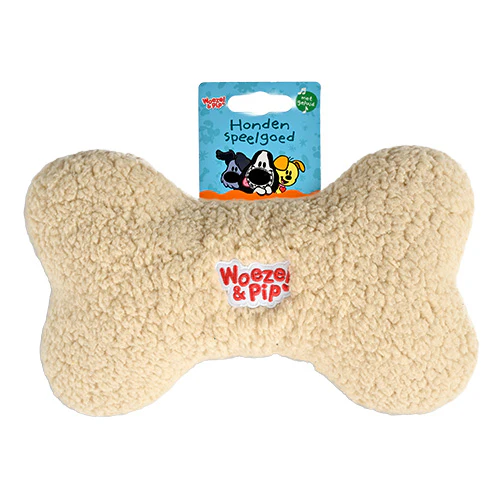 Het bot is bekleed met heerlijk zachte schapenwollen pluche, perfect om tegenaan te liggen na een actief speelmoment. De aaibare stof maakt dit speeltje extra geschikt voor honden die van knuffelen houden én voor gezinnen met jonge kinderen die dol zijn op de wereld van Woezel & Pip.